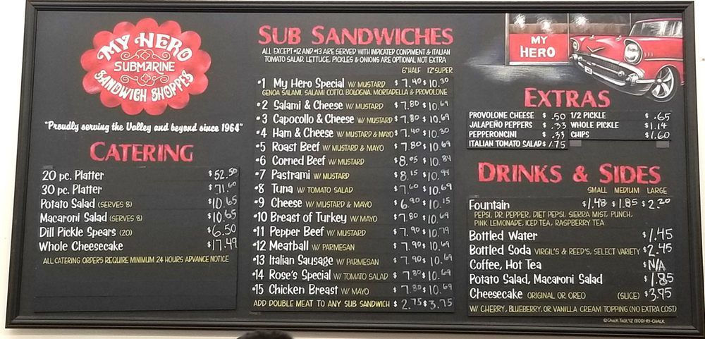 Welcome to My Hero Submarine Sandwich Shoppe, a delightful haven for sandwich lovers since 1964, located at 9514 Reseda Blvd, Northridge, CA. This casual eatery features an enticing menu of sub sandwiches renowned for their fresh ingredients and bold flavors. The standout options include the My Hero Special Sandwich packed with a medley of meats like genoa salami and provolone, alongside tasty offerings like the Roast Beef and Pastrami sandwiches.